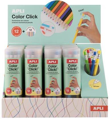 Apli Színes töltőceruza készlet, display, APLI "Color Click", 12 különböző szín, 12 készlet/display (20079)