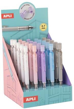 APLI Nyomósirón display, 0, 7 mm, hegyezővel, rázós, APLI, vegyes színekben, 25 db - oneclick