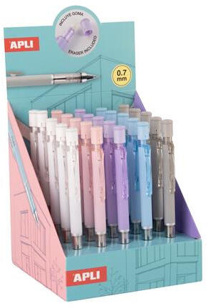 APLI Nyomósirón display, 0, 7 mm, hegyezővel, rázós, APLI, vegyes színekben, 25 db - toptoner