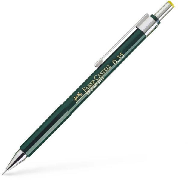 Kényelmes fogású, 0,35 mm hegyvastagságú Faber-Castell TK-Fine töltőceruza.A ceruza fel van töltve grafithegyekkel.