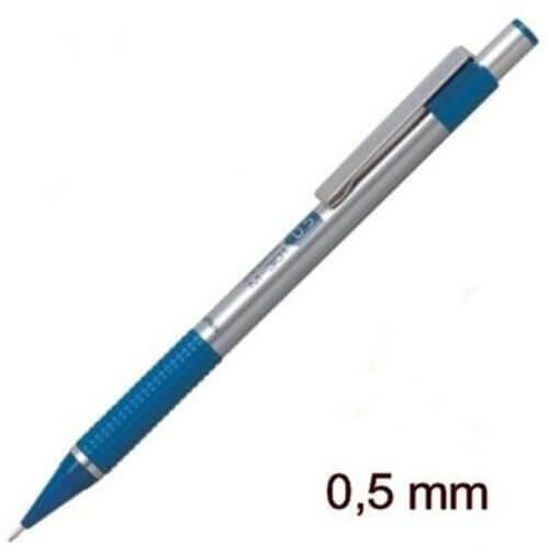 ZEBRA márkájú, kiváló minőségű 0,5 mm vonalvastagságú töltőceruza rozsdamentes acél testtel és bordázott sötétkék markolattal.